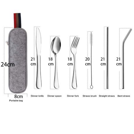 Portable & Stylish - Not only design for convenience, but also with simple elegance. It fits easily into the modern grey case. Convenient to carry with the tricolour belt and zip up the reusable travel silverware with ease.
