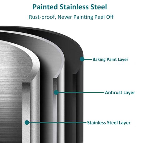 Made of stainless steel, and the outer layer is processed with frosted matte and spray paint. It is waterproof, anti-rust, and anti-corrosion.
