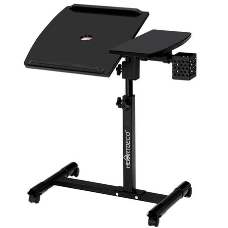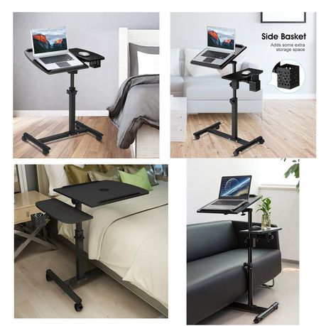 Composite wood tabletop, split panels with grain texture & a metal base make this laptop stand sturdy enough. The modern conception will easily match most décor styles.