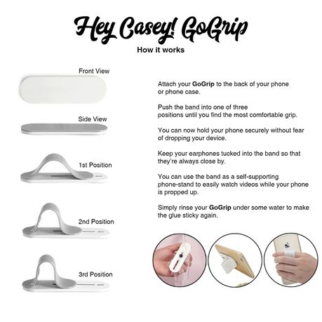 1 x Hey Casey! GoGrip - Removeable Mobile Phone Holder Grip