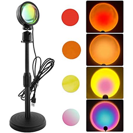 - Easy to Use.USB interface, easy to use.The farther the distance, the greater the projection that the sunset light can project on the wall or ceiling. The light casts amazing colored circular lights on the wall, ceiling and floor.