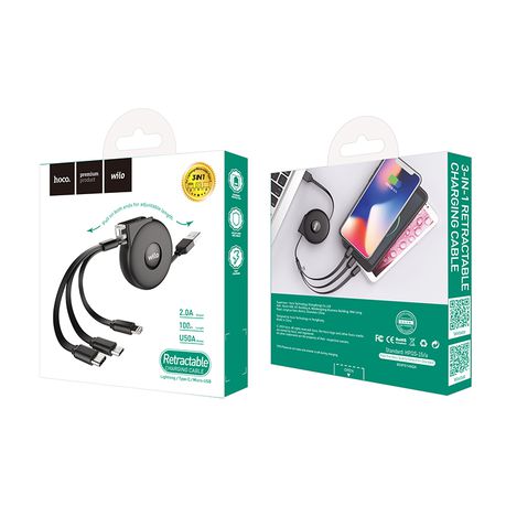 - Double Pull, 3-In-1 Structure (USB To Lightning + Micro-USB + Type-C)