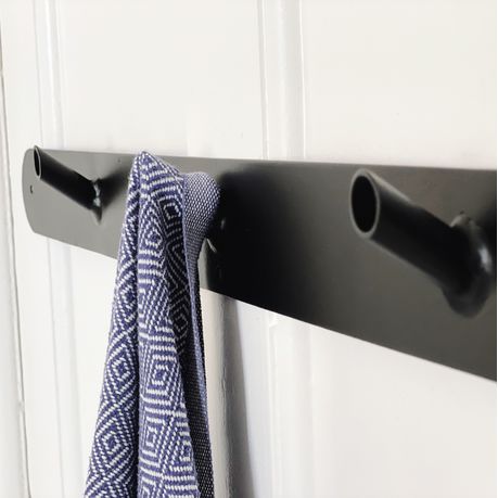 This functional, yet aesthetic carbon steel hook unit looks stylish in any space. It mounts easily with three fixing holes provided. Brass self tapping screws are included to complete the look.