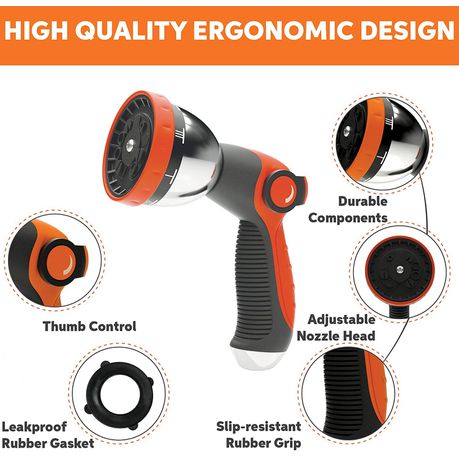 Our heavy-duty spray nozzle for the garden hose is made of 100% rust-proof, high-quality materials. The heavy-duty construction ensures long use of the sprayer for garden hose.