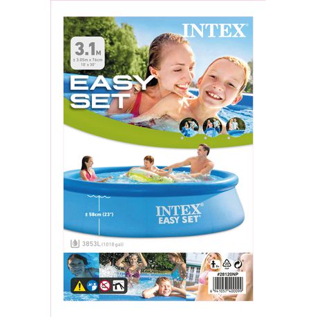 Make a splash all summer long with the Intex® Easy Set® inflatable pool that is easy to set up and store. This pool will make your backyard the place to be all summer as your family can relax and play. Ready for water in 10 minutes, simply spread out on level ground, inflate the top ring, fill the pool with water, and enjoy the fun.