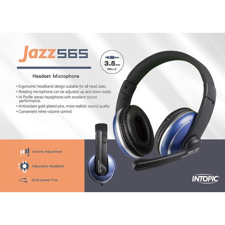 These Jazz-565 Hi Profile stereo headphones have an ergonomic adjustable one size fits all design and comes with an adjustable mic, 2.2m cable and gold plated 3.5mm audio in and out pins for more excellent sound performance. It is a perfect solution for music playback, video playback and video calling both at home and at the office.