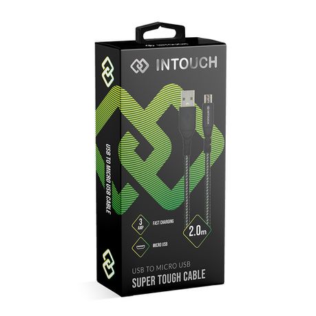 INTOUCH Tough Braided Charge &Sync Cable – USB to Micro USB - 2m Black