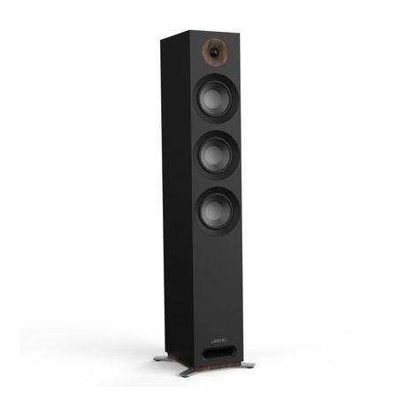 Wood grain accents around the tweeters, at the bases and feet give a handcrafted, natural look.