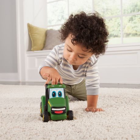 This chunky John Deere vehicle has soft-touch surfaces with rounded edges for safe play.