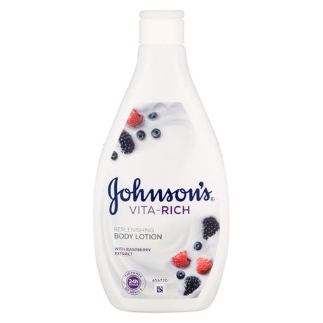 Enriched with skin-loving raspberry extract and nourishing shea butter, Johnson's Vita-Rich Replenishing Body Lotion actively hydrates, helps to smooth your skin and keeps it comfortable for 24 hours.