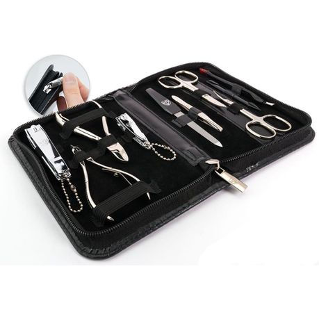 A Microfiber Cleaning Cloth has been included in your manicure and pedicure set. For good maintenance and prolonged life of the implements, we recommend cleaning with the provided cloth as well as re-oiling scissors and nippers from time to time and keeping them dry.