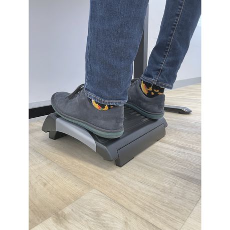 Having a footrest under your desk helps to complete your ergonomic setup. Often, once you have adjusted your chair to the correct height, your feet are left dangling which affects your ability to sit back in your chair and fully utilise the chair's backrest. A footrest can assist with grounding your feet, pushing you back into your chair and, in doing so, ensuring a better posture. With the Kelly footrest you can adjust the tilt of the footrest's footplate. It also offers height adjustment to ensure that you get the best positioning for your requirements.
