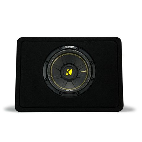 Whether it's a thin-mount, single or dual-subwoofer design, CompC Loaded Enclosures are factory-tuned with a front-facing port to bring you loud, great-sounding bass. If you're thinking of big bass, odds are you're thinking about Kicker. Their 44TCWC102/104 loaded enclosure features a pair of 10inch CompC subs that will really add some low-end muscle in your music. The rugged ported box was designed as a perfect match for the subs, so you can count on getting maximum performance, no matter what kind of music you prefer. Each 10inch CompC sub features a flex-resistant polypropylene cone for hard-hitting lows without distortion, with a ribbed foam surround that promotes long excursion and helps to keep the cones on target. A heavy-duty steel basket provides a reliable foundation for big bass, and extensive venting ensures long-lasting performance that won't break down when the bass gets heavy. Sturdy medium-density fiberboard ensures long-lasting performance from the enclosure, and the special-design side port enhances bass production without getting sloppy.