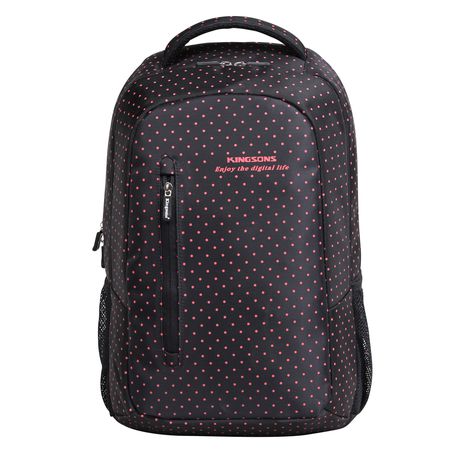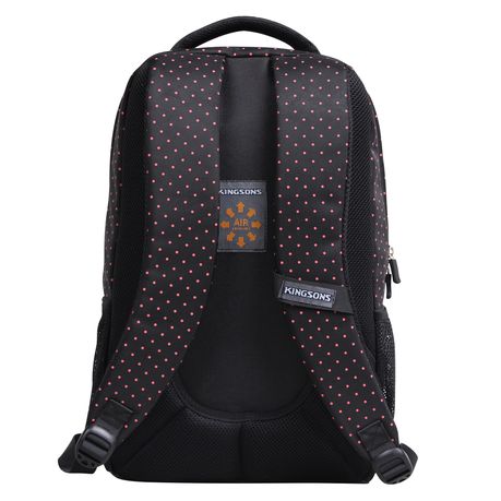 The Kingsons Hot Dot Series notebook backpack is part of a fun and quirky range, combining playfulness and style with comfort and functionality! The spacious main compartment snugly fits a 14" notebook computer with plenty of space left over for your daily needs. The two extra zippered compartments feature a netted quick-access pocket and stationery organizer pockets. Two netted side pockets are ideal for water bottles and other quick-access items. The back of the bag features padding and modern air passage technology, cooling the back of the bag during long periods of wear while the adjustable straps ensure a comfortable fit every time.