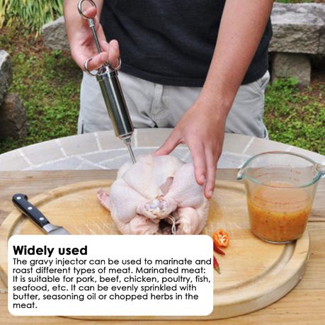 With the gravy syringe, different types of meat can be marinated and baked. For marinated meat: Suitable for pork, beef, chicken, poultry, fish, seafood, etc, can be evenly sprinkled with butter, seasoning oil or chopped herbs into the meat.