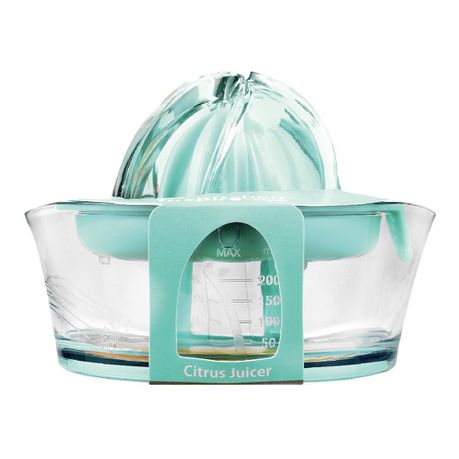 Kitchen Inspire - Citrus Juicer The Inspire Juicer has two spouts allowing you to pour either pure juice or juice with pulp. You can measure freshly squeezed juice in ml, tablespoon or teaspoon and per cup. The juicer has two reamer sizes so you can extract juice from small and large citrus fruit. This product has been made using ABS and AS plastic and it has a non-slip TPR bottom ring.