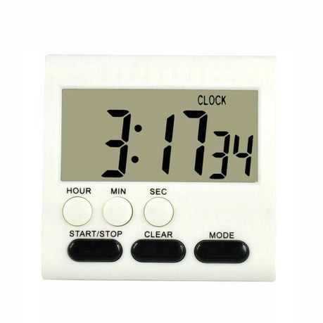 This digital kitchen timer comes with a 24-hour clock and an alarm clock.