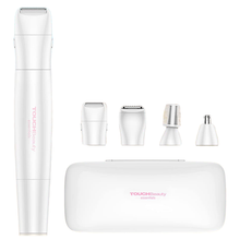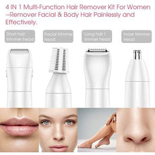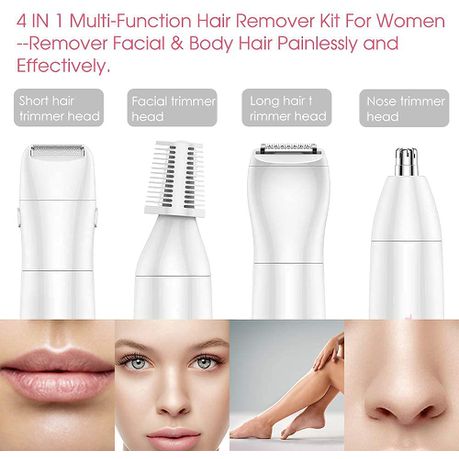 Shaver set comes with 4 replaceable heads, facial hair remover, nose hair trimmer, eyebrow hair trimmer and body shaver for removing hairs from upper lips/ check/ underarm/ bikini area/ legs