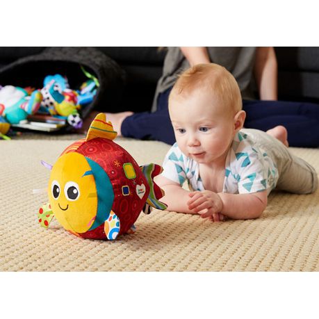 Innovative self-righting design. Encourages baby to roll and crawl. Hear chime sounds as it rolls. Multiple colours, patterns and textures to explore