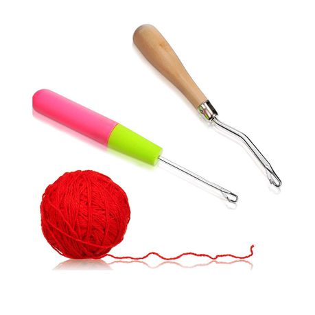 3.one pcs wooden bent latch hook, one pcs large plastic latch hook and one pcs small plastic latch hook, can make hand manufacture rugs.