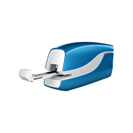 Electric stapler for up to 10 sheets 80 gsm paper for home, school and office use, uses Leitz E1 staples - Leitz Staples: E1 staples 4 mm leg length fasten up to 10 sheets of paper - Space-saving: Fits on every desk and most drawers thanks to its compact size, anti-slip feet won’t mark furniture, integrated staple remover, battery powered for on the go use (batteries not included)