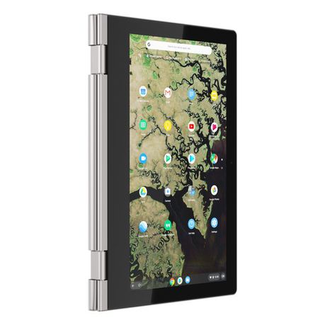 Lenovo C340 11 Convertible 2 in 1 Chromebook: Handle everyday work tasks with this compact Lenovo Chromebook. The 11.6 inch IPS HD display offers accurate color reproduction, and the built in microphone and 720p webcam enable clear video conferencing. Preloaded with Chrome OS, this platinum gray Lenovo Chromebook has 4GB of RAM for smooth multitasking, and the 32GB of eMMC memory loads and saves data quickly.