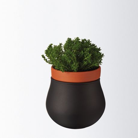 - Black planter. Pot for plants or herbs, with a pot insert