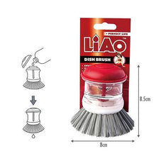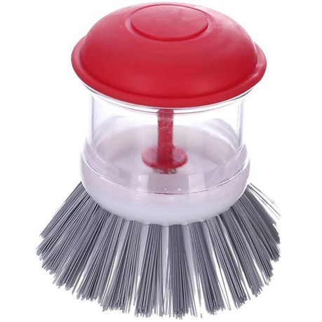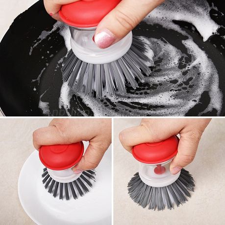 Push button release washing up liquid soap dispensing brush for kitchen dish