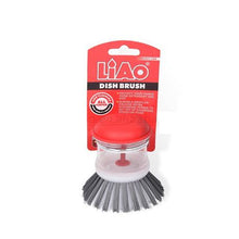Push-button release washing up liquid soap dispensing brush for kitchen dish