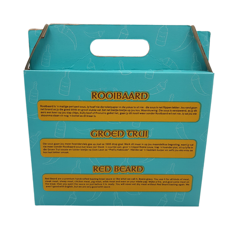 Rooibaard (Red Beard) 375ml Basting Sauce is a premium handcrafted basting braai sauce, or as we like to call it, "Boere Gravy". You use it for all kinds of meat; steak, lamb, chicken, pork, venison and even on your porridge.