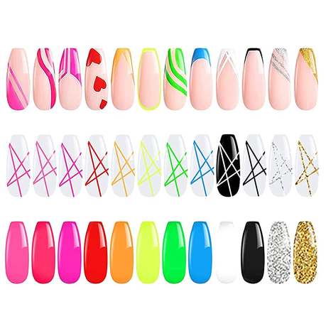 12 Neon Colors Nail Painting Art Tools-A variety of colors can meet the creative needs of nail lovers! includes black, white, yellow, pink, gold, sliver, purple, blue, red brown shades.