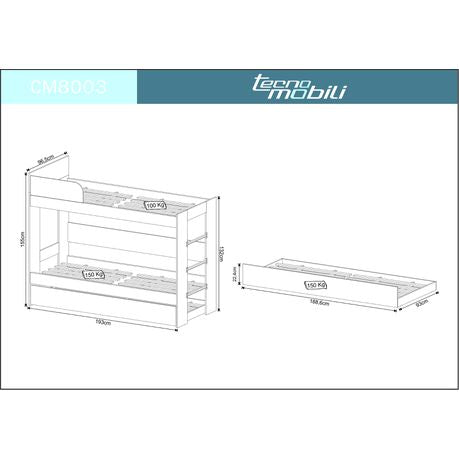 1 X Linx Bunk Bed with Roll Out Trundle Set - White