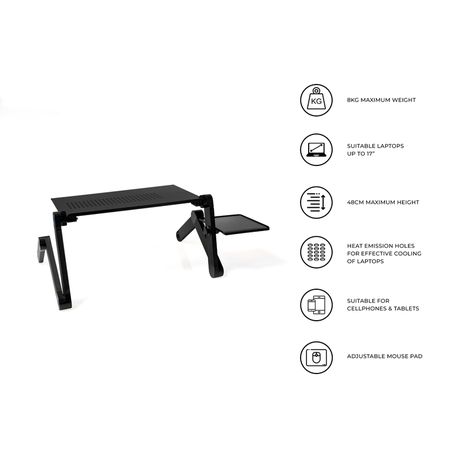 Material: Aluminium alloy, Method: press and hold the button on the joints to move legs to suitable position, Colour: Black