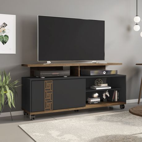 1 x Linx Rack Topazio Entertainment TV Stand - Black & Brown
