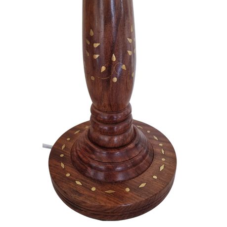 Exotic Hard Wood Table Lamp with Brass Colour Detailing on Base and Lower Stem
