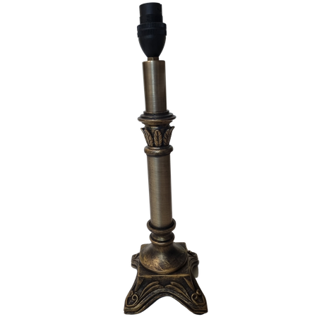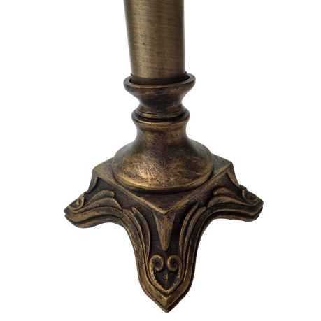 Very Solid and Highly Decorative Antique Bronze Table Lamp. Ornate Base with Intricate Leaf Design at the Top of the Stem