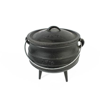 - 100 percent Cast iron Potjie Pots include well-fitted lids and heavy duty carrying handles