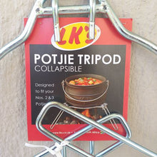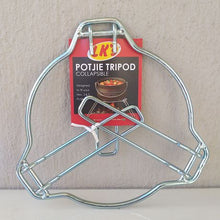The potjie tripod is designed to fit your No. 2 and No. 3 potjie pots. The collapsible tripod is designed to fold away for easy storage and is made from a hardwearing 8mm thick mild steel. The stand can also be used.