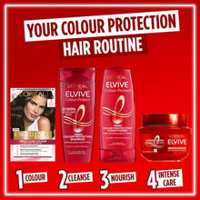 Nourish, after shampooing work Elvive Colour Protect conditioner through the midlengths and ends of your hair. Lightly massage into your scalp before rinsing.