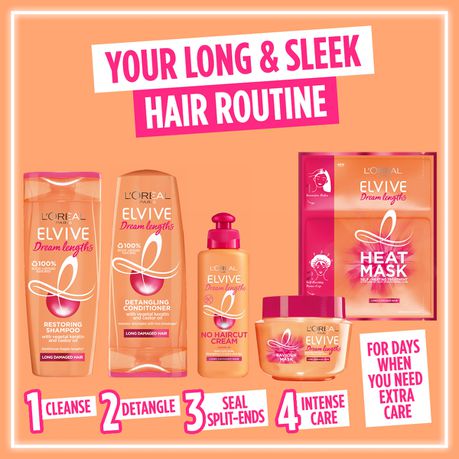 Nourish, after shampooing work Elvive Dream Lengths conditioner through the midlengths and ends of your hair. Lightly massage into your scalp before rinsing.