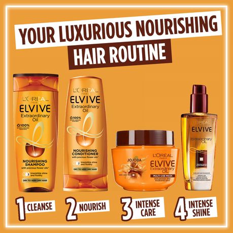 Nourish, after shampooing work Elvive Extraordinary Oil conditioner through the midlengths and ends of your hair. Lightly massage into your scalp before rinsing.