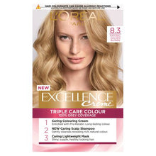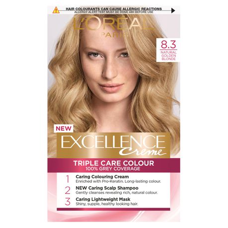 Excellence Creme by L'Oreal Paris is a permanent hair dye that will help you to achieve a refreshing colour in under 30 minutes. The product enriches your hairs natural beauty and visibly improves your hairs look and feel. The formula is enriched with key ingredients such as Pro-Keratin and Ceramide and leaves the hair looking smoother, feeling stronger and replenished with revitalized colour. Always check the colour result on the pack depending on the current hair colour.