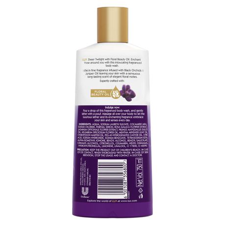 Indulge in irresistibly smooth and fragranced skin with LUX Sheer Twilight body wash. Formulated with the Fine Fragrance Pearls, this fragrant shower gel has twice the perfume bloom of real flowers. The enchanting fragrances will envelop you in a warm, floral cocoon that lasts long after the shower.
