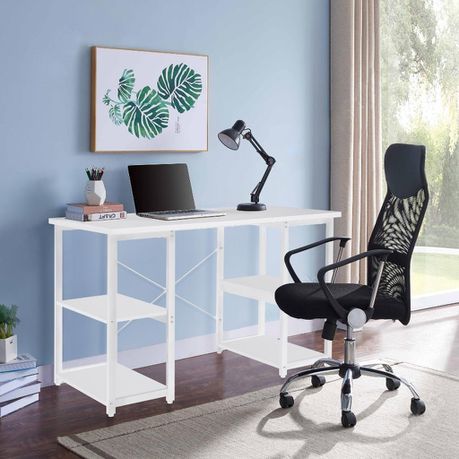 - White wood grain and white metal frame gives this desk an industrial charm, which can be easily matched with various decorative styles.