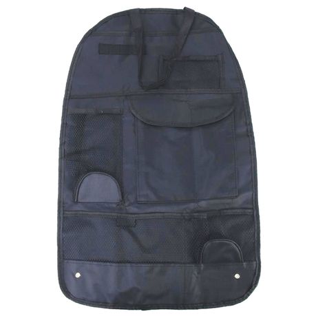 300D Oxford Cloth. Hangs on back of driver/passenger seat. Includes 1 x Velcro Pocket, 2 x Mesh Storage Pockets, 2 x Drink Holders and 4 x Pen Holders. Help keep your car organised and is great for use on long car trips