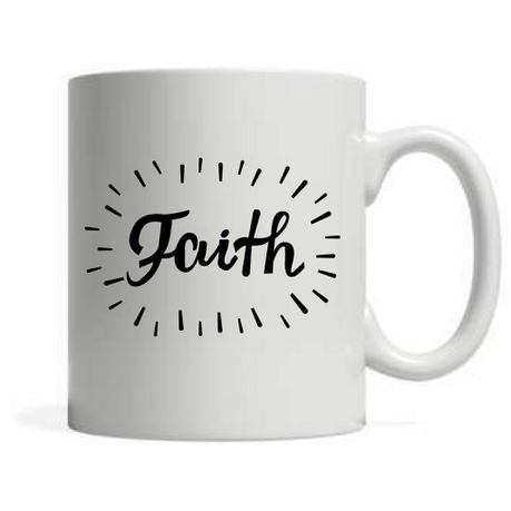 Specifications:_ - Capacity: 330ml. _ - Material: Ceramic_ - Colour: White_ - Scripture printed on both sides of the mug: Faith__