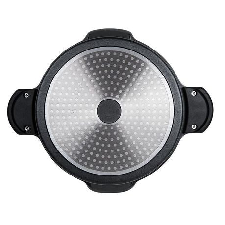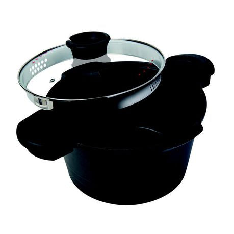 The MasterPan 23cm / 4.7L Stock n’ Pasta Pot can be safely used on any heat source. With a much longer lifespan than your usual non-stick cookware, its MasterLon double layered non-stick technology provides a thick base ideally designed to balance heat flow evenly throughout the entire pot for perfect pasta every time. This safe, easy-to-clean cast aluminum pot boasts a superior non-stick, stain-resistant coating, and is built for daily use. The MasterPan cast aluminum Stock N’ Pasta Pot features easy-click-and-lock ergonomic handles, a tempered glass lid, and a drip free pouring spout. Cooking flawless pasta has never been this easy! Our products are dishwasher safe, as well as PFOA, lead, cadmium, and heavy metal free.