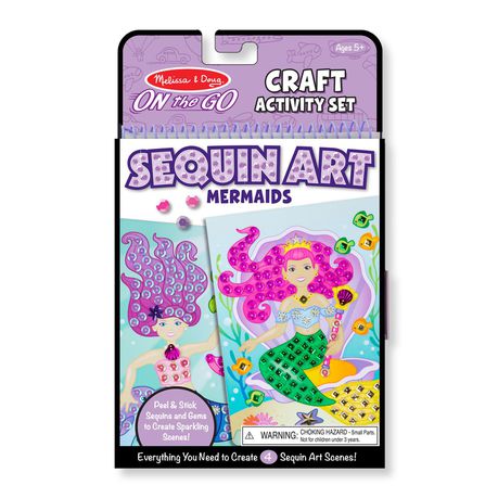 This craft activity set lets children easily make fun mermaid scenes that shimmer and shine. Decorate four cards with more than 500 multi-coloured and multi-shaped sequins and gems. Peel away a section of a scene to reveal a sticky surface, then use the included pick-up tool to grab, place, and press sequins and gems into place.