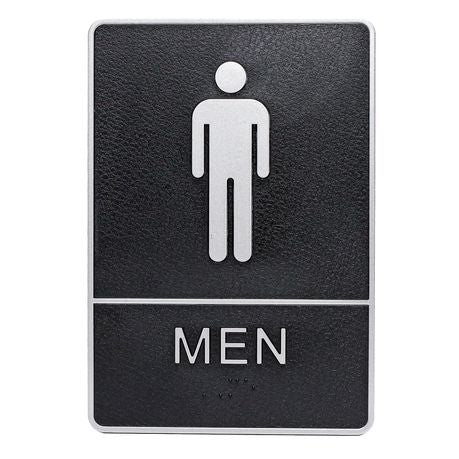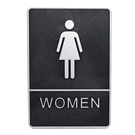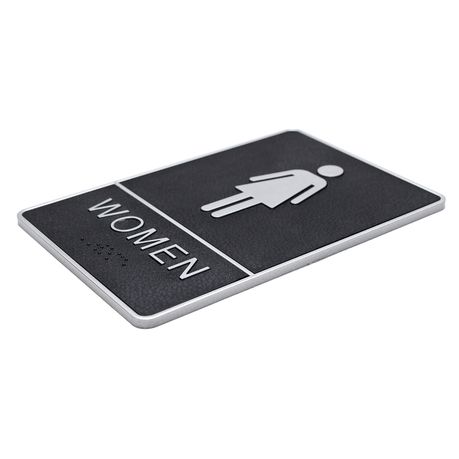 Thick hard wearing plastic Toilet sign with leather effect and silver trim