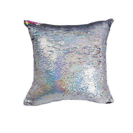 1 x Rainbow and Silver Mermaid Sequin Pillowcase With Cushion Inner